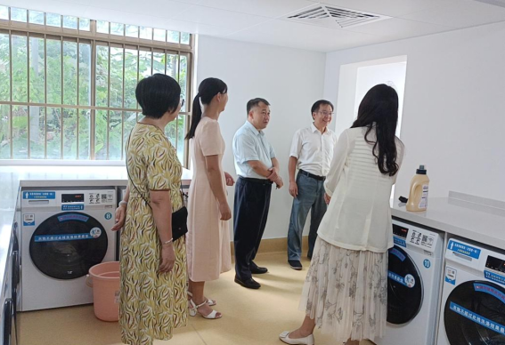 9月27日,处领导带队到学生公寓洗涤服务中心检查指导工作