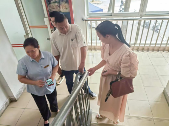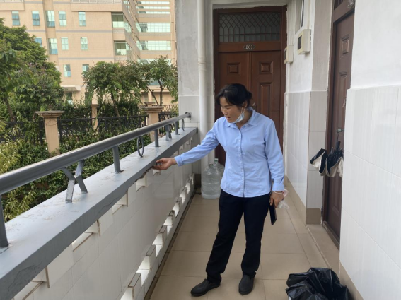 查看学生公寓扶梯刷漆情况