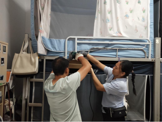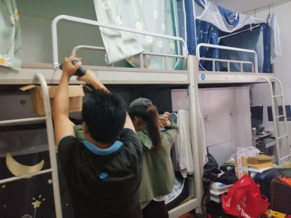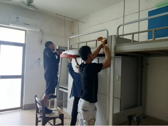 2.为了进一步改善学生公寓宿舍生活设施,根据工作安排,在部分学生公寓开展架床护栏加高施工作业,在9月21-27日已完成东17栋、西1栋、西2栋、西3栋、西4栋、西5栋、西6B栋、西10栋、西11栋、西12栋、西15栋共11栋学生公寓767间宿舍2676个床位的架床护栏加高工作。