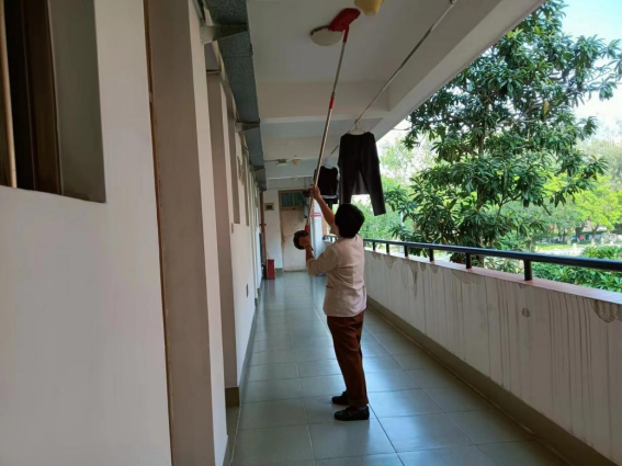 为营造学生公寓园区宜学宜居的环境,认真做好园区内消防设备设施、热水机组、洗涤设备等各种设备设施和33间自习室的保洁维护工作;做好学生公寓园区内472个生活设施(其中公共长椅102张,乒乓球桌152张,晾衣架134个、健身器材84个)的维护工作。