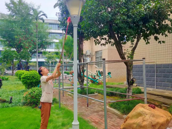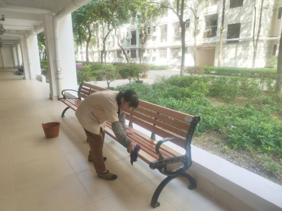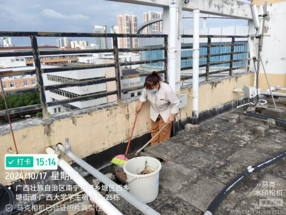 为营造学生公寓园区宜学宜居的环境,认真做好园区内消防设备设施、热水机组、洗涤设备等各种设备设施和33间自习室的保洁维护工作;做好学生公寓园区内472个生活设施(其中公共长椅102张,乒乓球桌152张,晾衣架134个、健身器材84个)的维护工作。