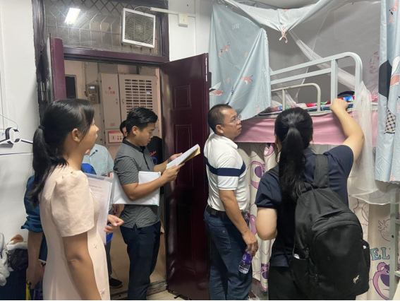 10月13日,处领导带队到学生宿舍勘察2025年计划修缮楼栋