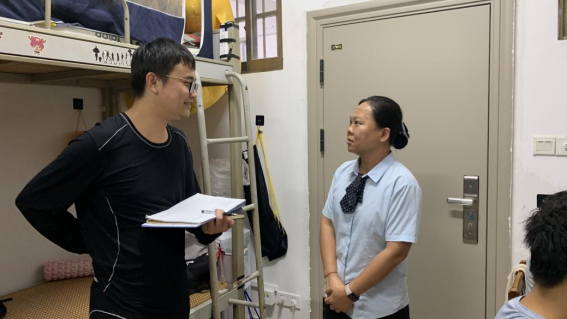 秋季第八周学生公寓各项服务工作有序开展,本周到宿舍走访学生93人次,帮助学生解决热水、天面漏水等问题共3起;办理宿舍业务5217人次(其中办理外宿12人,调宿学生7人,新入住学生3人,其他业务102人, 晚归登记5093人次)。