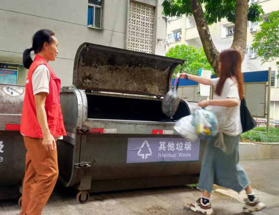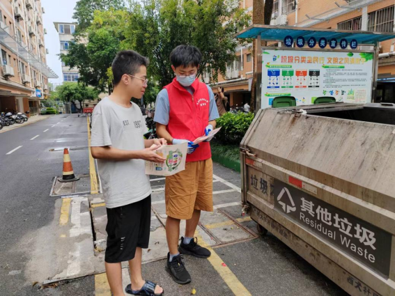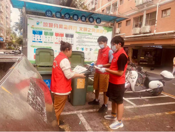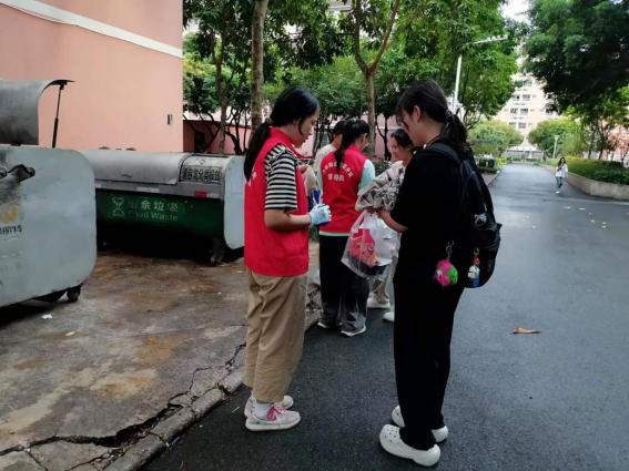 本周垃圾分类督导员共处理垃圾约43.921吨,其中厨余垃圾约21.09吨、其他垃圾约22.83吨、有害垃圾约 0.001吨;垃圾分类督导员走访学生宿舍并发放垃圾分类宣传单244多张,向265多位同学宣传垃圾分类知识。