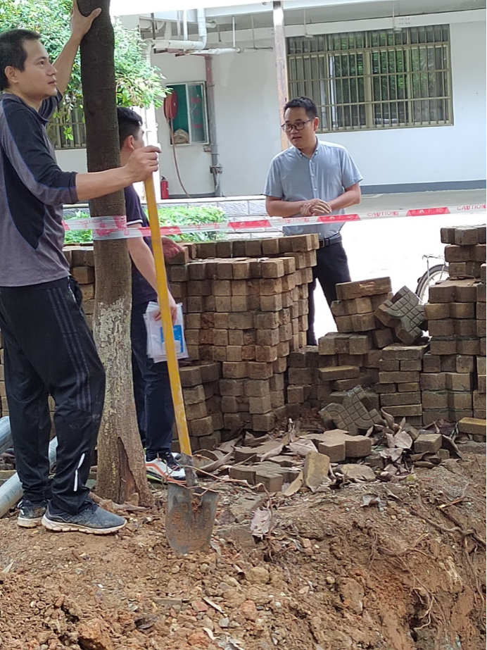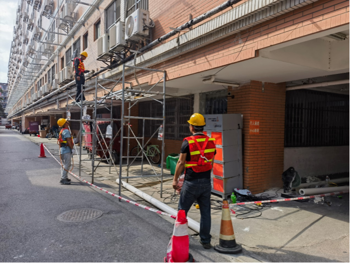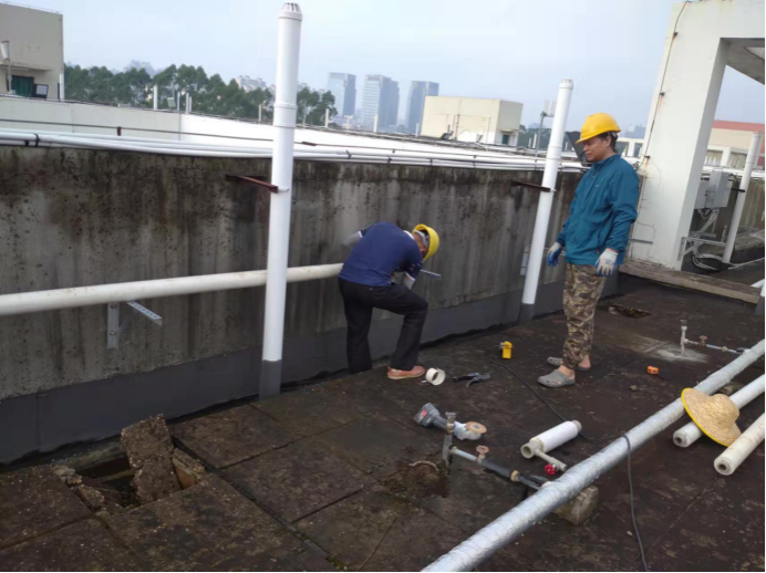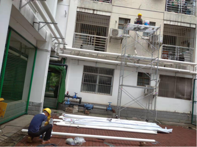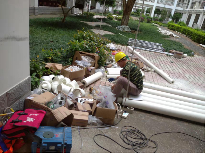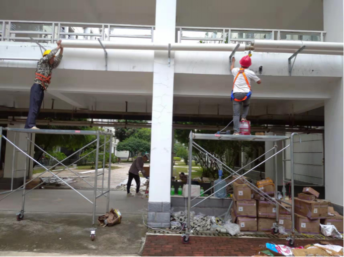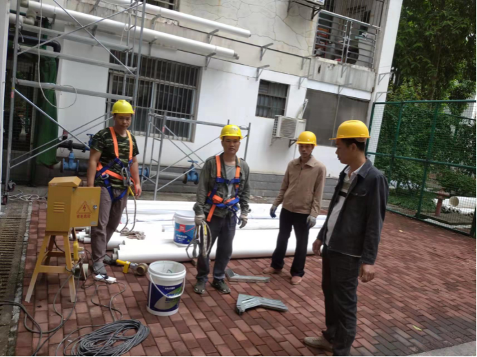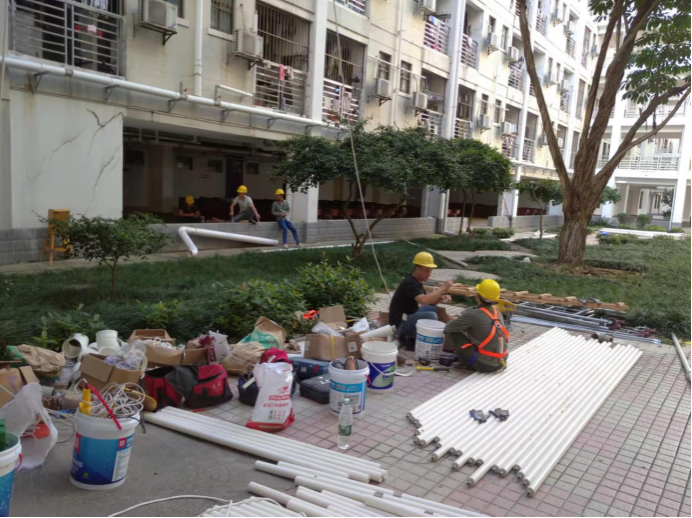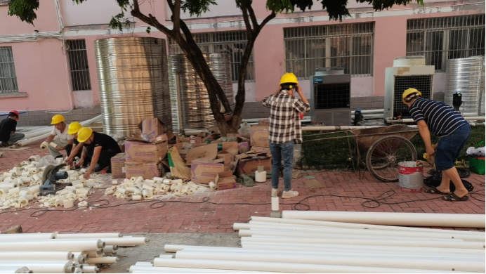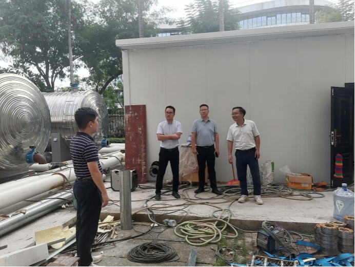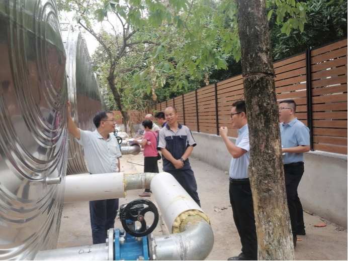 10月23日,后勤基建处副处长严壮锋检查并指导热水系统安装工作