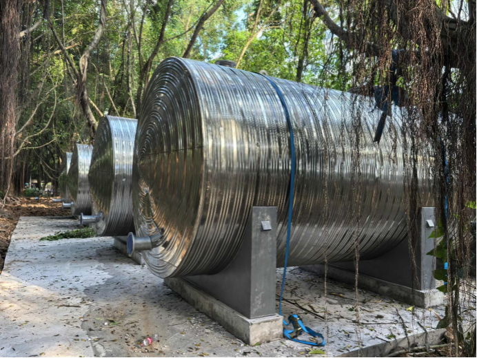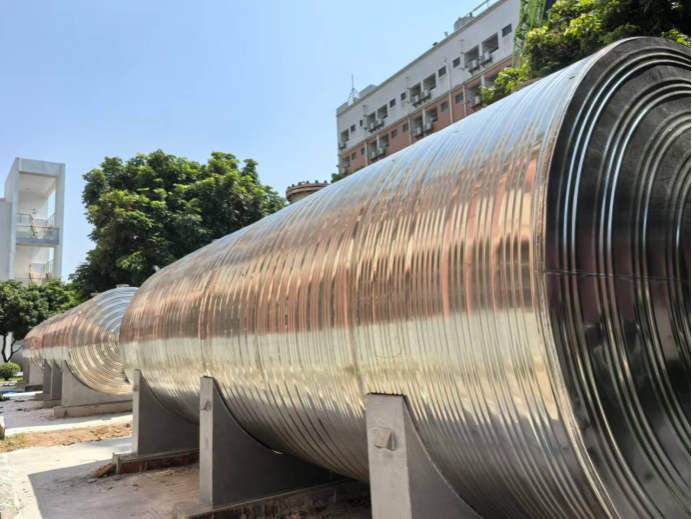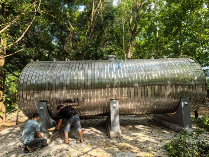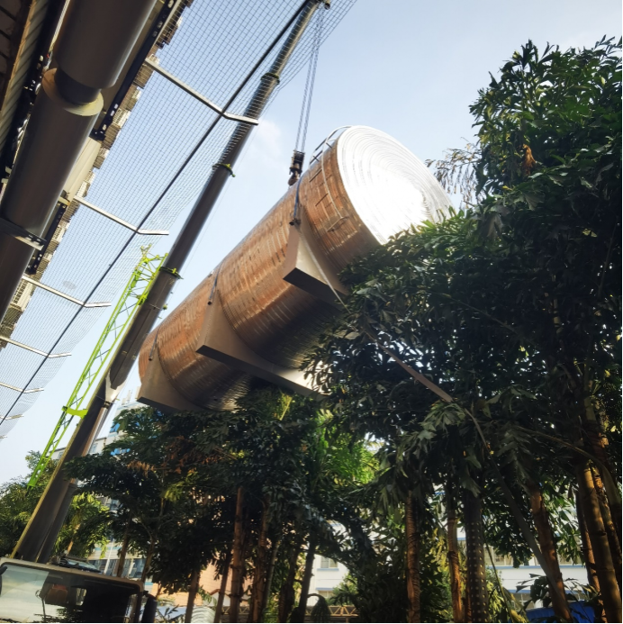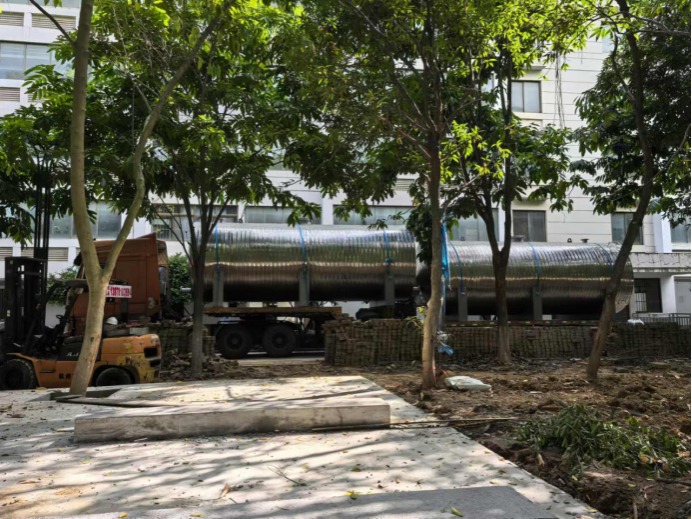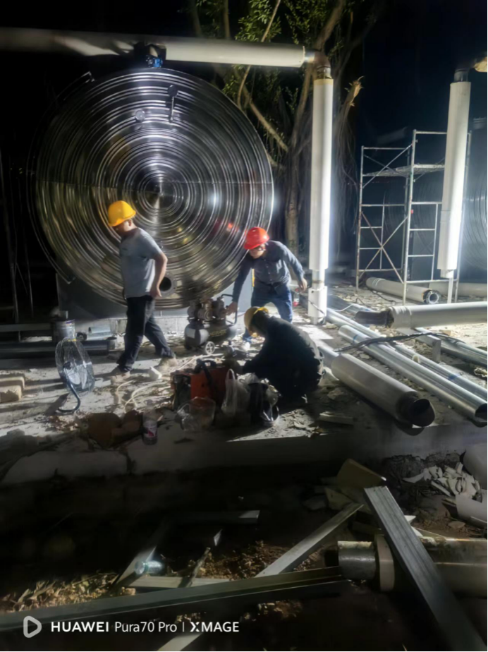 10月7日,1#能源站热水承压罐吊装到位