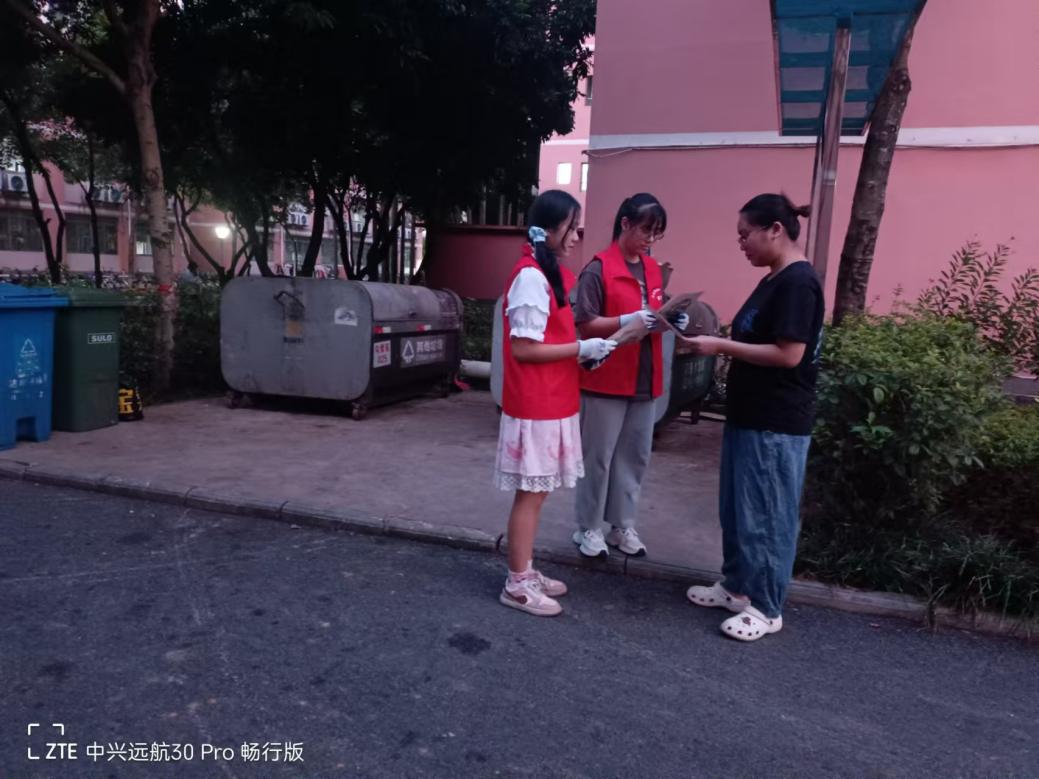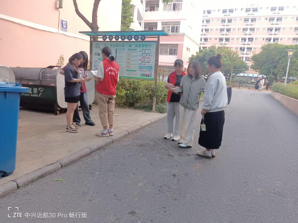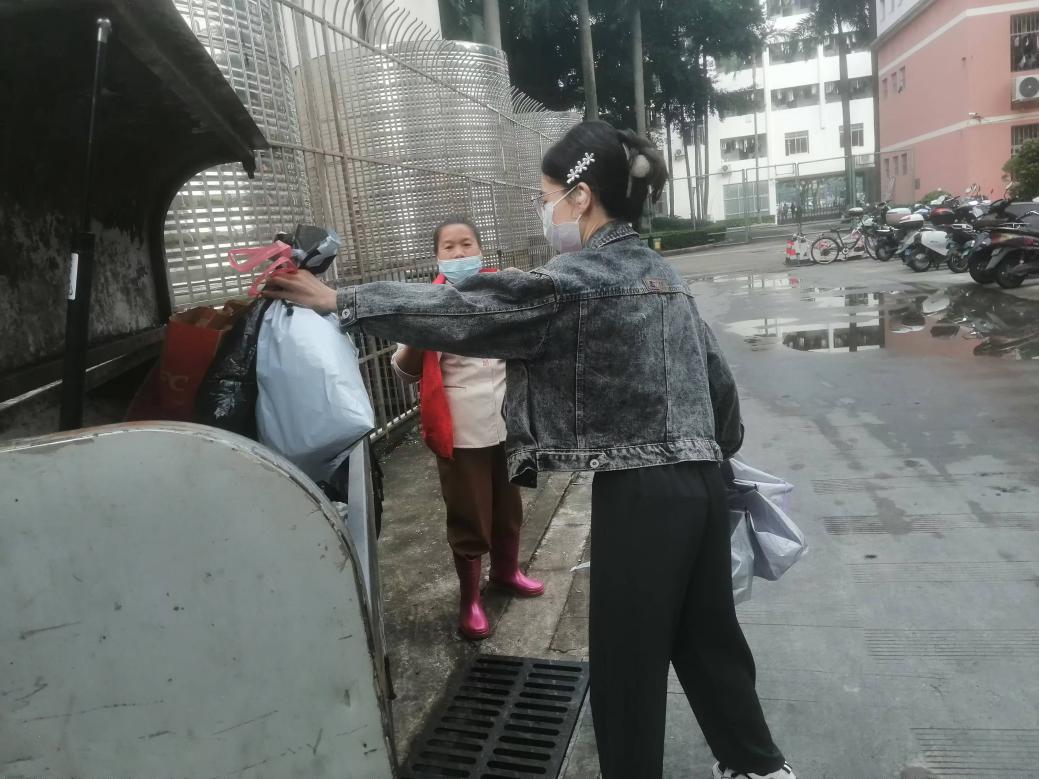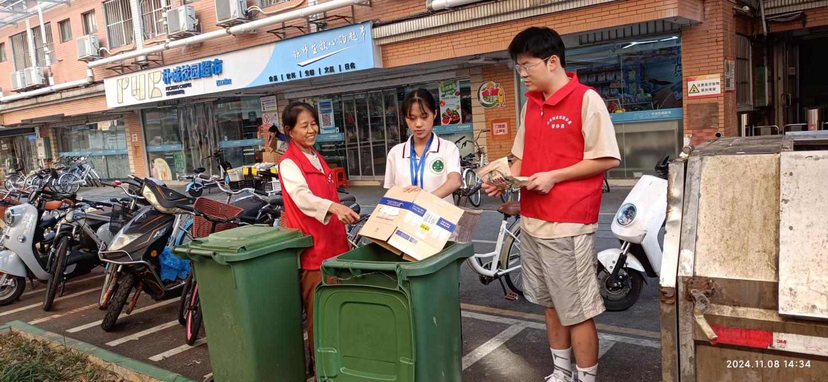 本周垃圾分类督导员共处理垃圾约41.761吨,其中厨余垃圾约20.05吨、其他垃圾约21.71吨、有害垃圾约 0.001吨;垃圾分类督导员走访学生宿舍并发放垃圾分类宣传单244多张,向289多位同学宣传垃圾分类知识。