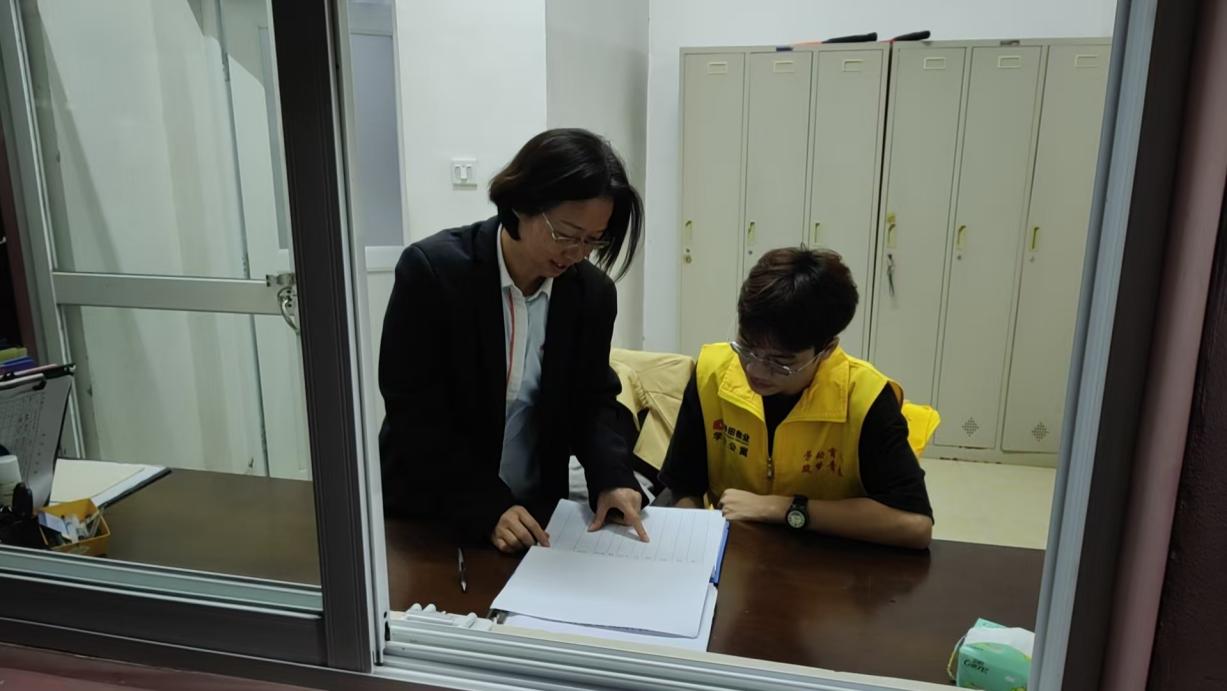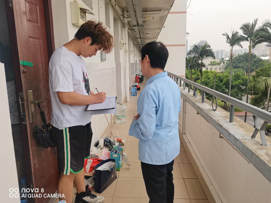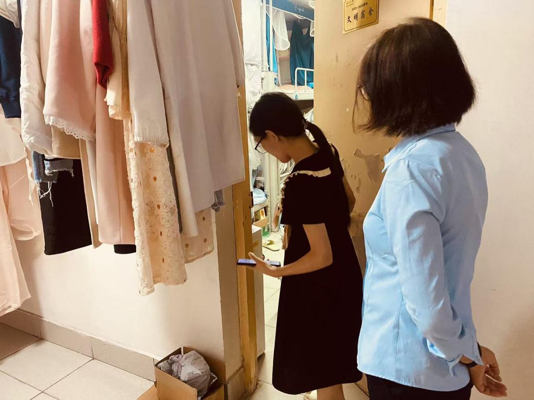 体验岗同学回访同学及时记录走廊堆放私人物品情况