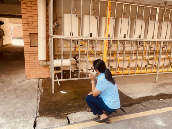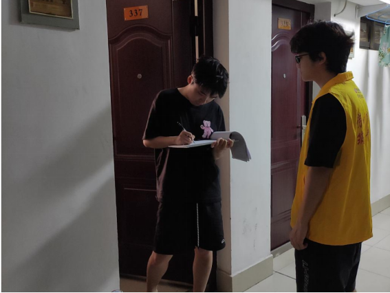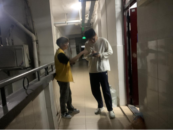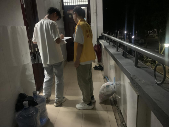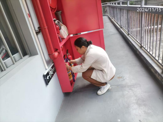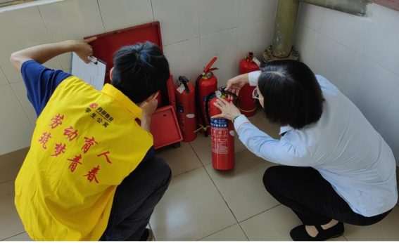 体验岗同学参与楼栋消防器材检查工作
