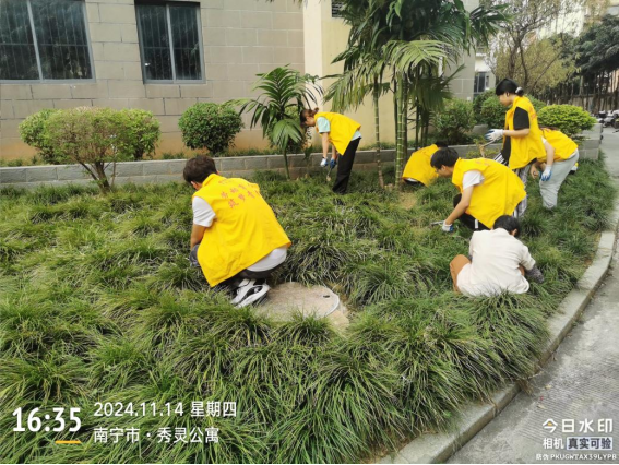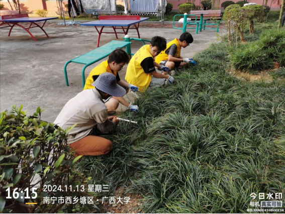 体验岗同学参与园区绿化护理工作