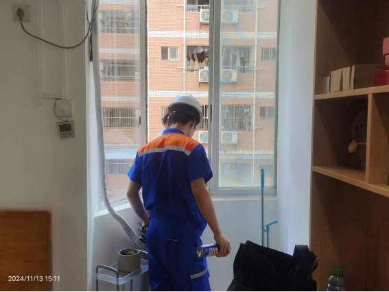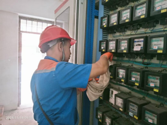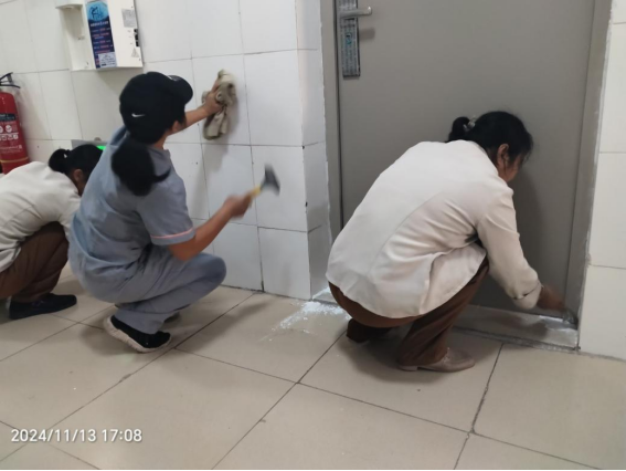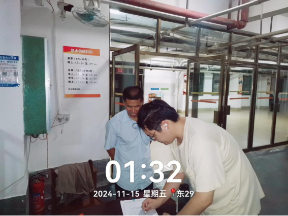 2024年11月9日-15日后勤服务24小时报修中心接电话报修、网上报修、现场报修1403单,其中学生公寓报修817单(已完工797单,完工率97.6%,余20单在维修中),其中电气类192单、给排水类260单、木工类154单、基建类25单、冷热水阀48单、其他类138单,余下586单由其他岗位负责完成维修。坚持对学生公寓183间配电房, 72个电表箱,2个水泵房每天巡检。