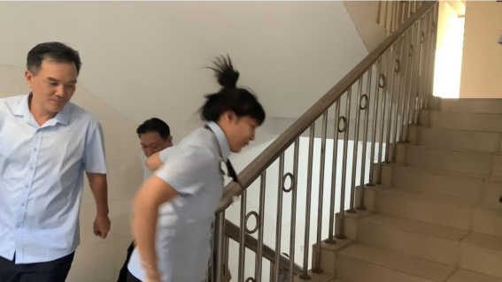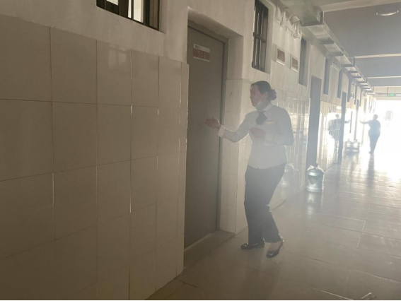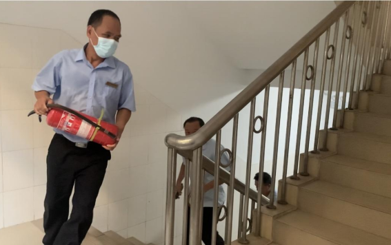 工作人员开展楼层疏散工作