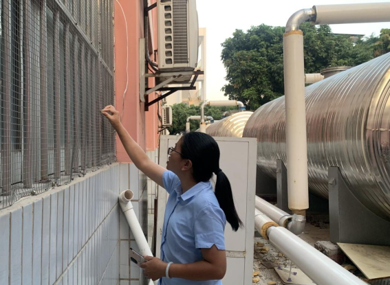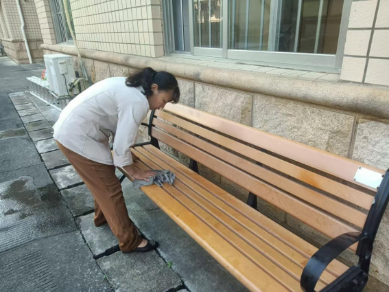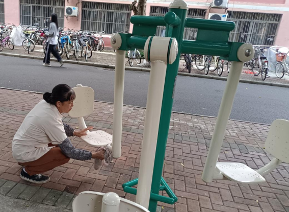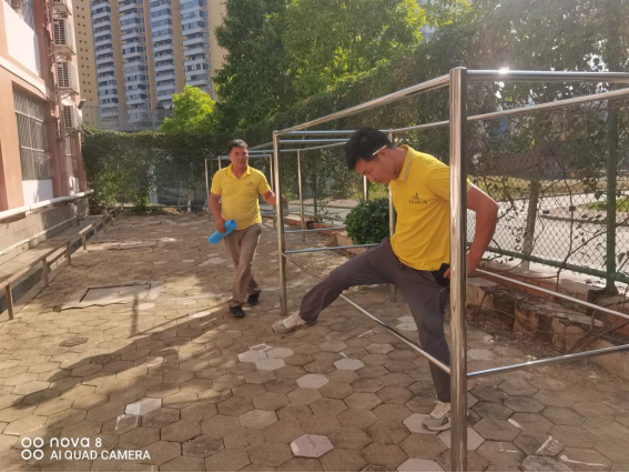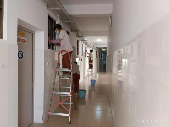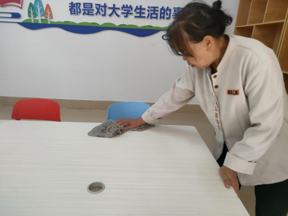 为营造学生公寓园区宜学宜居的环境,认真做好园区内消防设备设施、热水机组、洗涤设备等各种设备设施和39间自习室、9个多功能室的保洁维护工作;做好学生公寓园区内507个生活设施(其中公共长椅102张,乒乓球桌162张,晾衣架159个、健身器材84个)的维护工作。