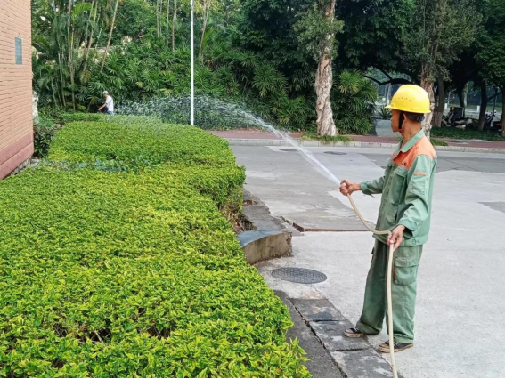 持续做好楼栋日常保洁和公寓园区绿植养护工作。进行日常保洁约19万平方米,清理明沟水沟长度约3270米;本周绿化园区重点进行各园区的绿化浇水。
