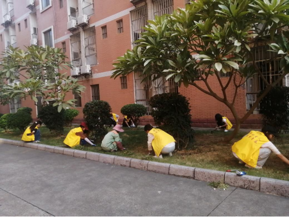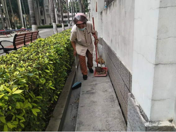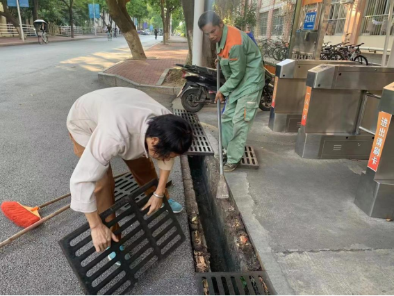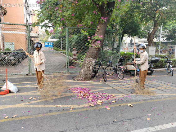 体验岗同学参与园区卫生保洁工作