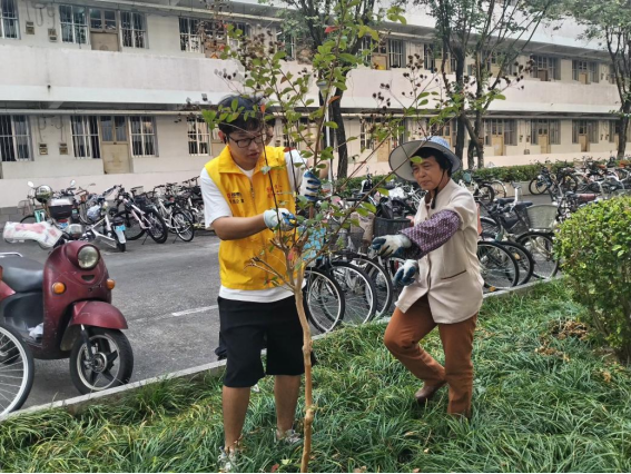 体验岗同学参与园区绿化修剪工作