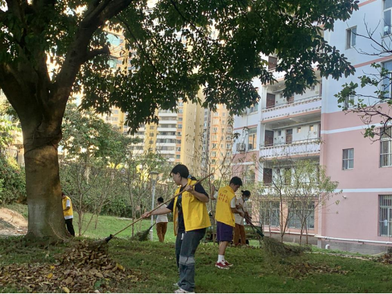 体验岗同学清理园区草坪落叶