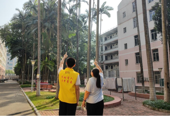 体验岗学生参与排查园区高大树木安全隐患工作