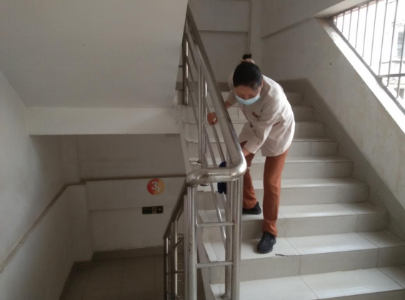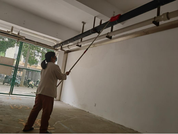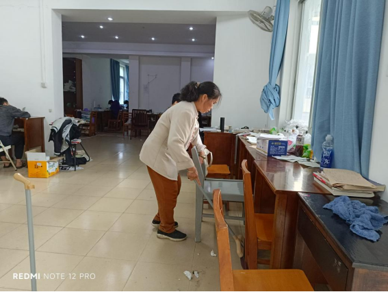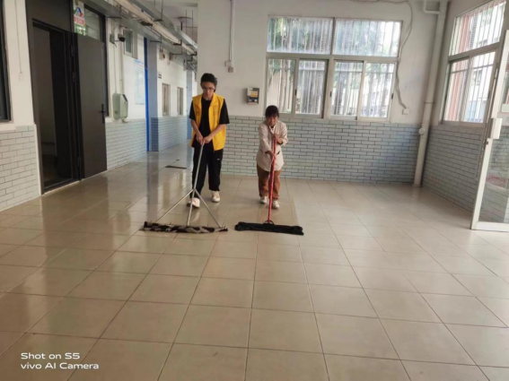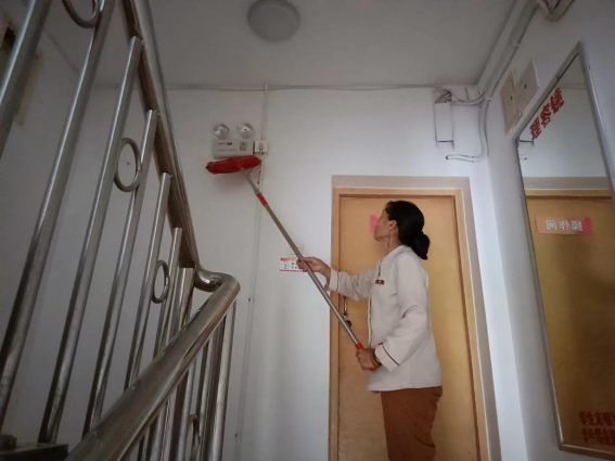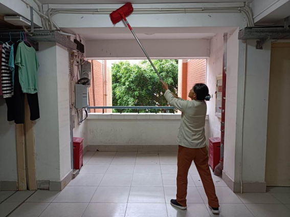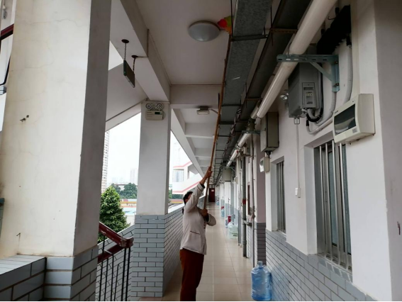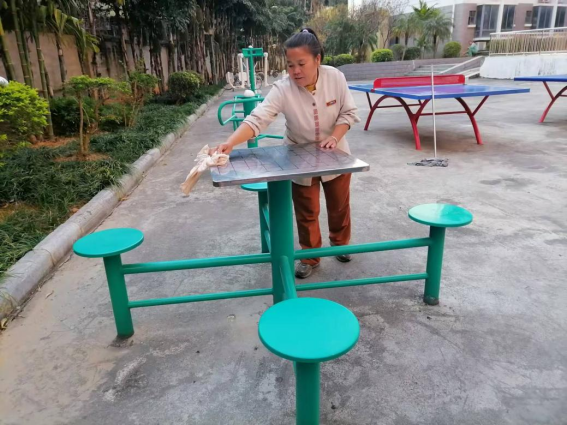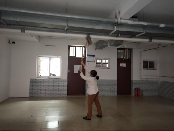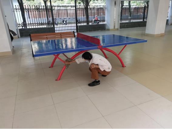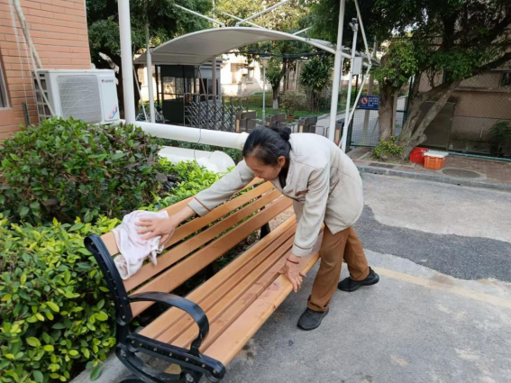 为营造学生公寓园区宜学宜居的环境,认真做好园区内消防设备设施、热水机组、洗涤设备等各种设备设施和40间自习室、15个多功能室的保洁维护工作;做好学生公寓园区内547个生活设施(其中公共长椅147张,乒乓球桌117张,晾衣架173个、健身器材110个)的维护工作。