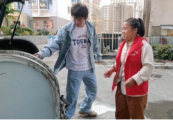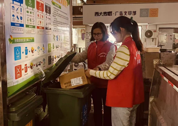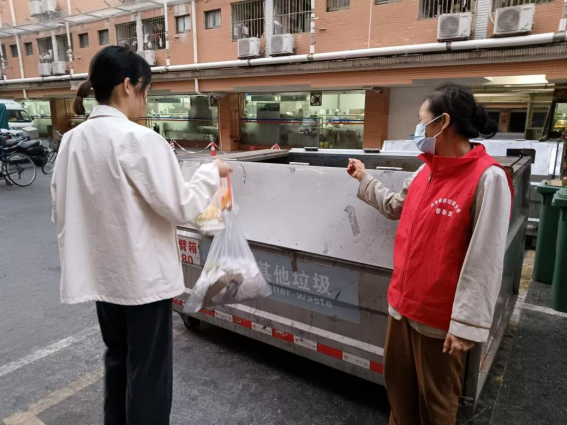 本周垃圾分类督导员共处理垃圾约41.401吨,其中厨余垃圾约19.88吨、其他垃圾约21.52吨、有害垃圾约 0.001吨;垃圾分类督导员走访学生宿舍并发放垃圾分类宣传单454多张,向627多位同学宣传垃圾分类知识。