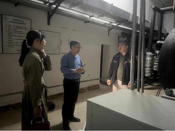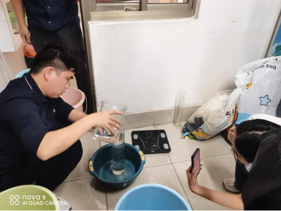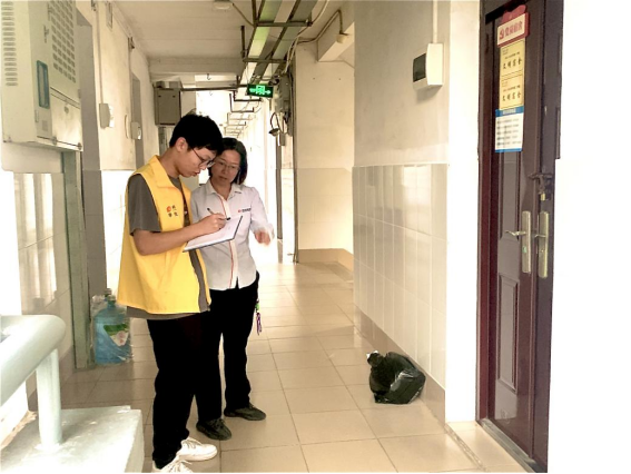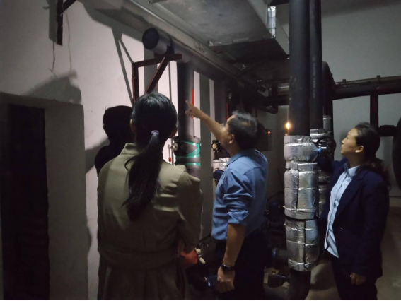 工作人员与热水公司、学院老师到西23栋进行热水检测工作