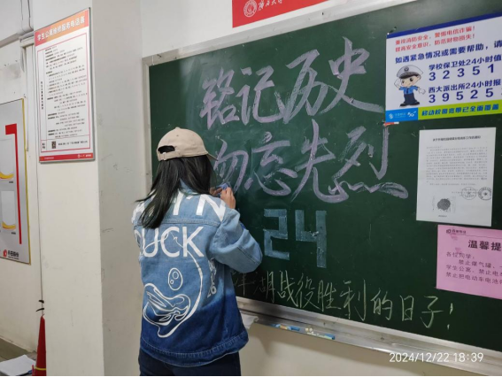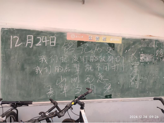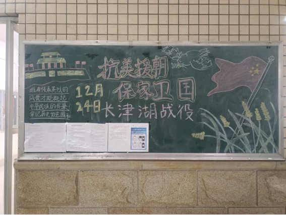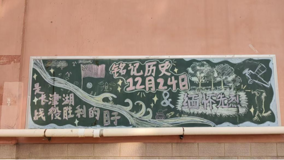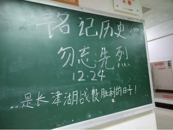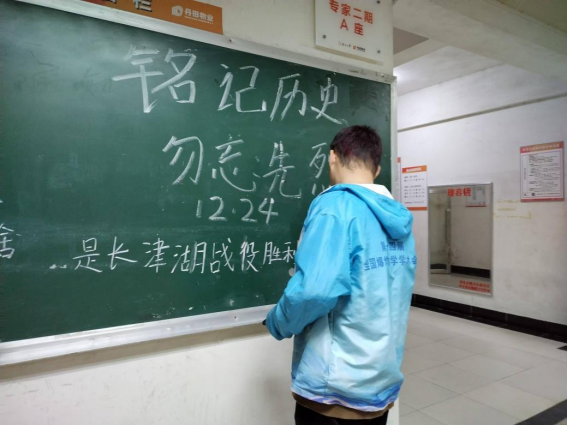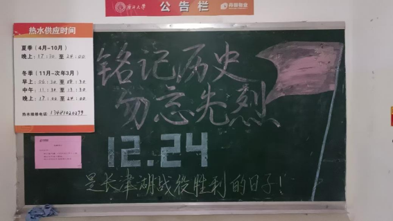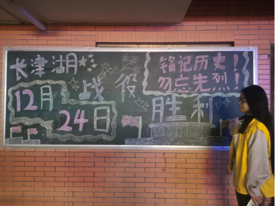 12月24日,是中国长津湖战役胜利的日子,去时少年身,归来英雄魂,远去的峥嵘岁月,先烈们用血肉之躯捍卫的和平,换来了后世的我们生于盛世,长于盛世的安稳;铭记历史,缅怀先烈;薪火相传,后生自强。为致敬我们的革命先烈,在学生公寓各园区的宣传黑板开展了以铭记历史,勿忘先烈为主题的黑板报宣传活动。