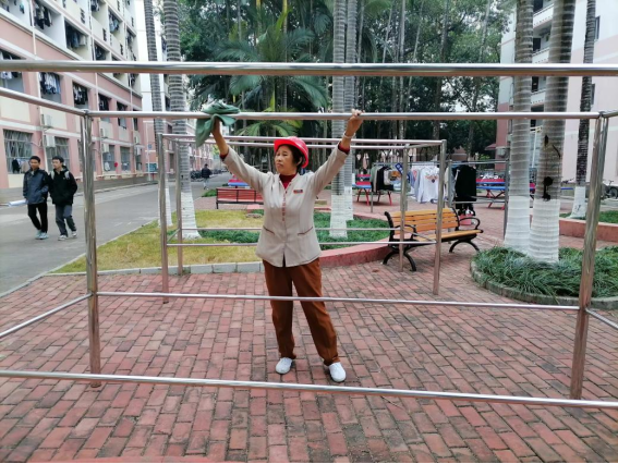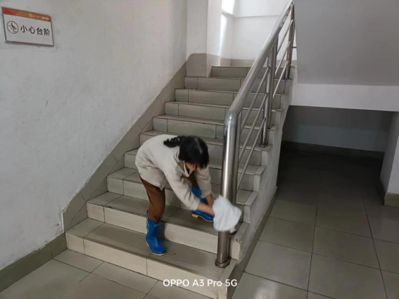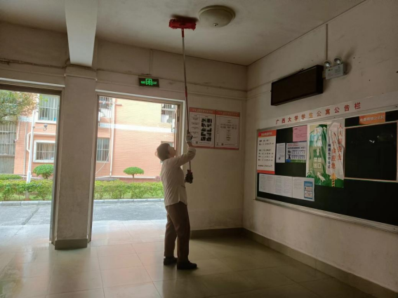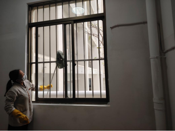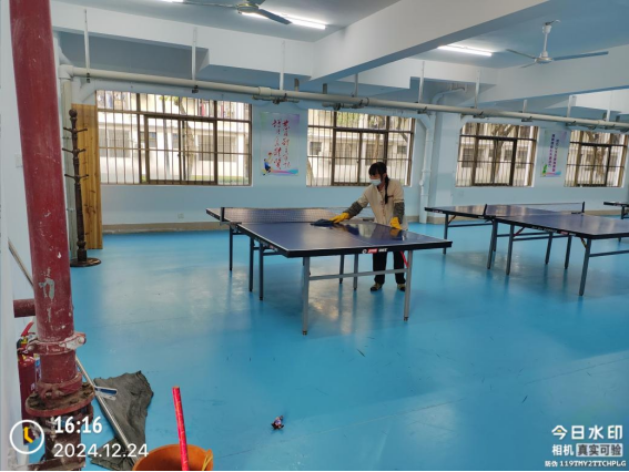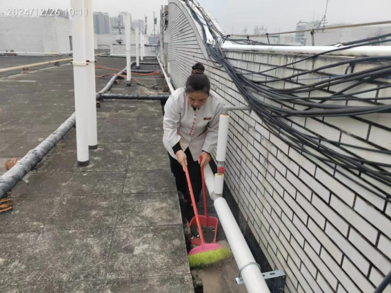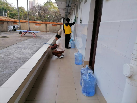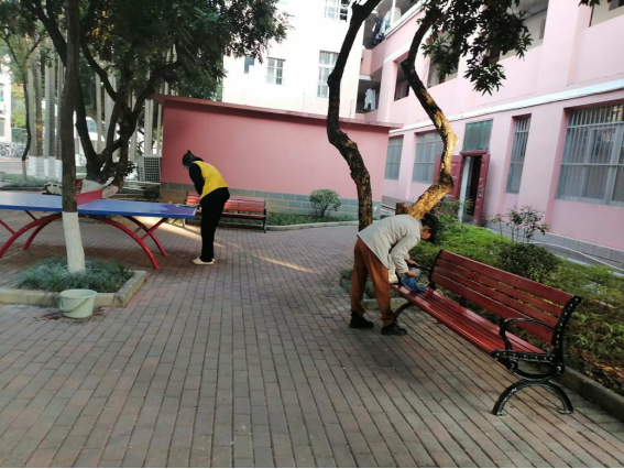 为营造学生公寓园区宜学宜居的环境,认真做好园区内消防设备设施、热水机组、洗涤设备等各种设备设施和40间自习室、15个多功能室的保洁维护工作;做好学生公寓园区内547个生活设施(其中公共长椅147张,乒乓球桌117张,晾衣架173个、健身器材110个)的维护工作。