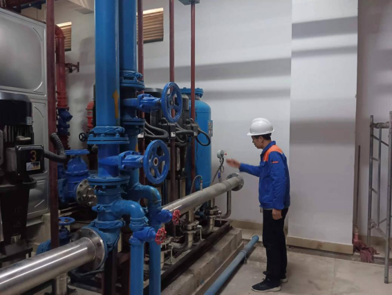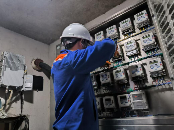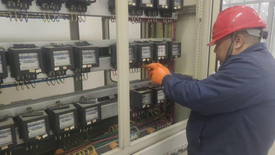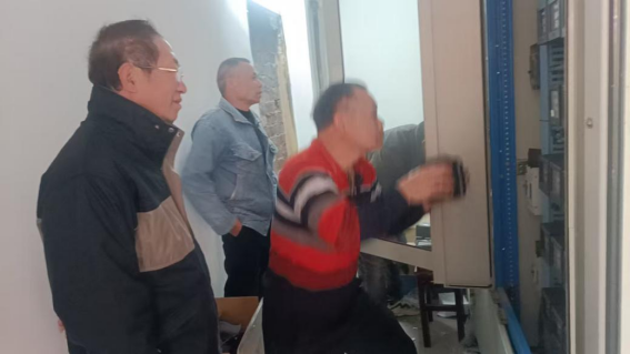 工作人员逐间对配电房进行线路排查,拧紧螺丝工作