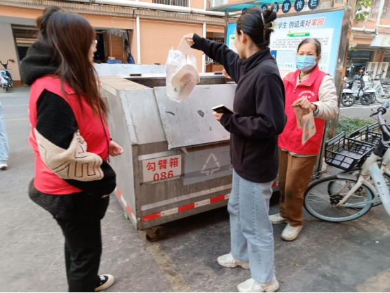 本周垃圾分类督导员共处理垃圾约42.481吨,其中厨余垃圾约20.4吨、其他垃圾约22.08吨、有害垃圾约 0.001吨;垃圾分类督导员走访学生宿舍并发放垃圾分类宣传单376多张,向421多位同学宣传垃圾分类知识。