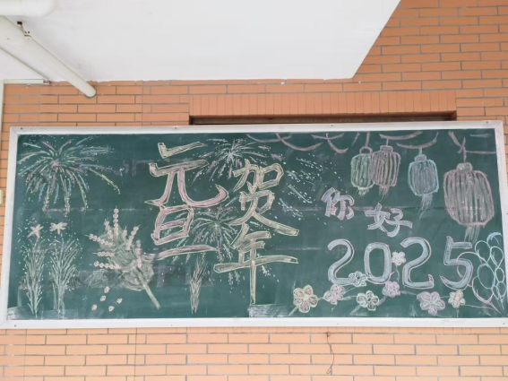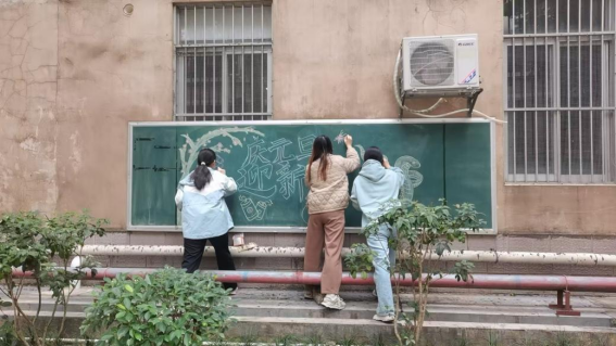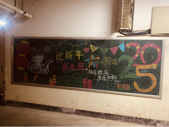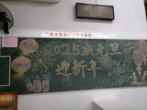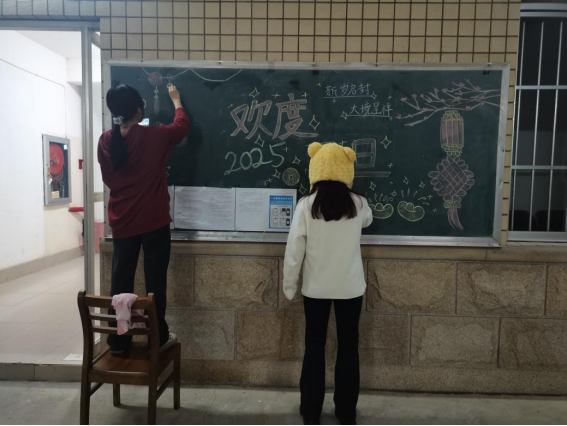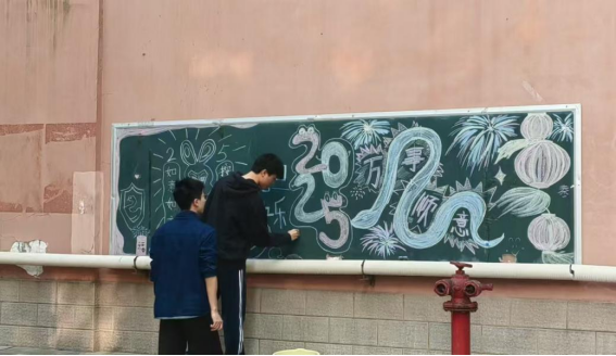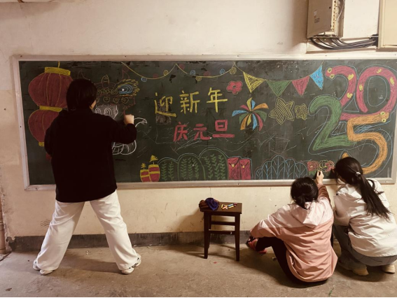 同学绘制“庆元旦 迎新年”主题黑板报