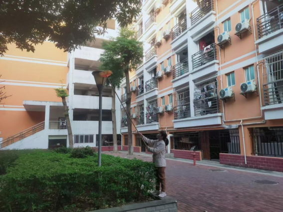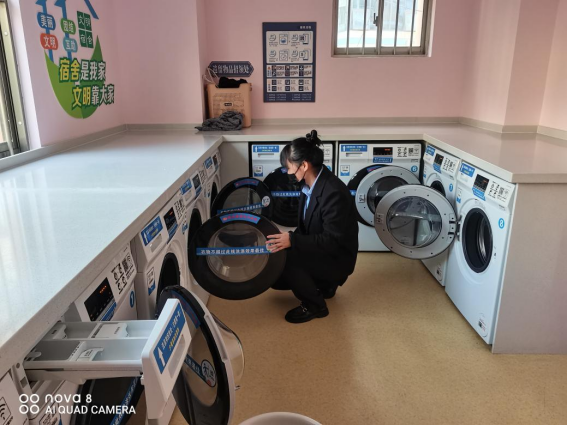 为营造学生公寓园区宜学宜居的环境,认真做好园区内消防设备设施、热水机组、洗涤设备等各种设备设施和40间自习室、15个多功能室的保洁维护工作;做好学生公寓园区内547个生活设施(其中公共长椅147张,乒乓球桌117张,晾衣架173个、健身器材110个)的维护工作。