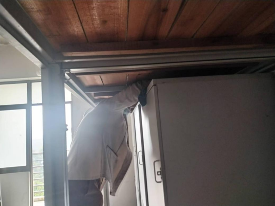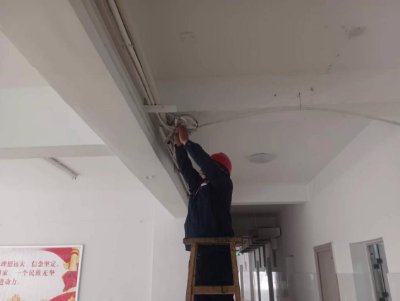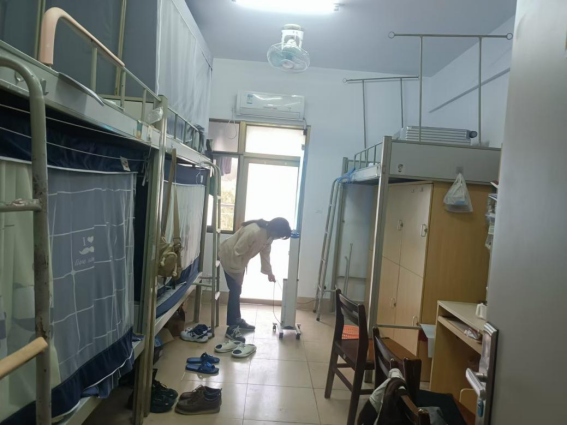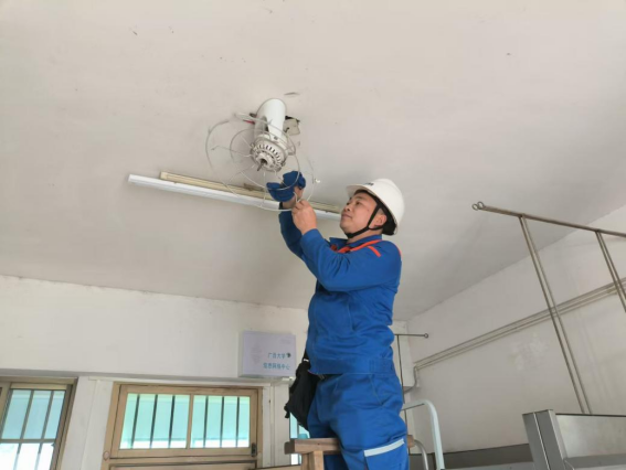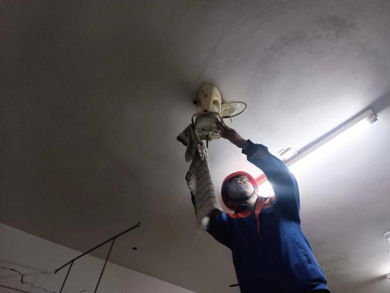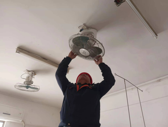 清洗寒假集中住宿房间风扇