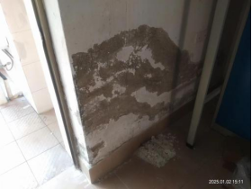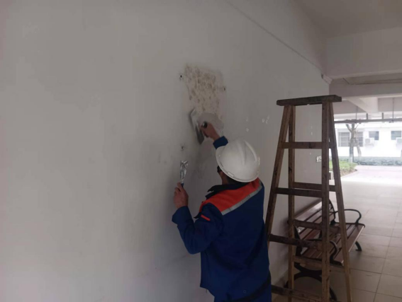粉刷东32栋架空层发黑墙面
