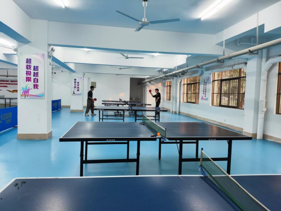 同学们在乒乓球馆打乒乓球