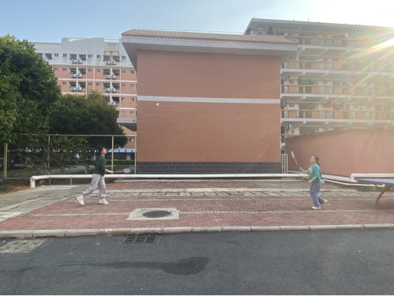 同学们在园区打羽毛球