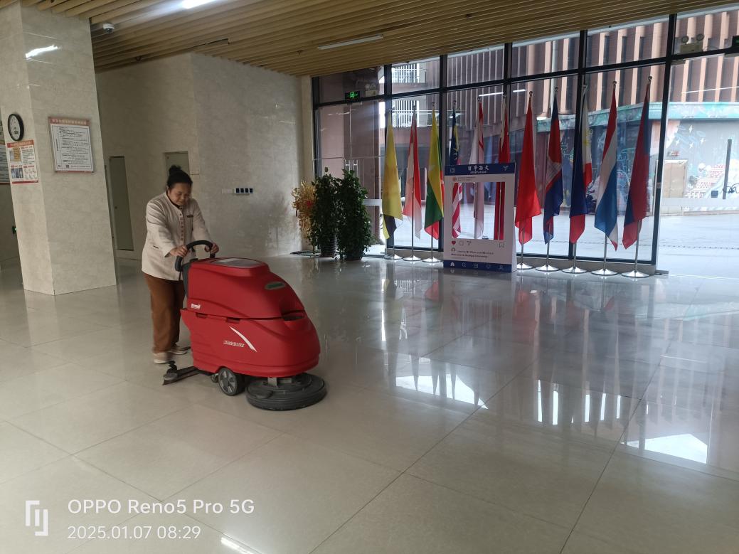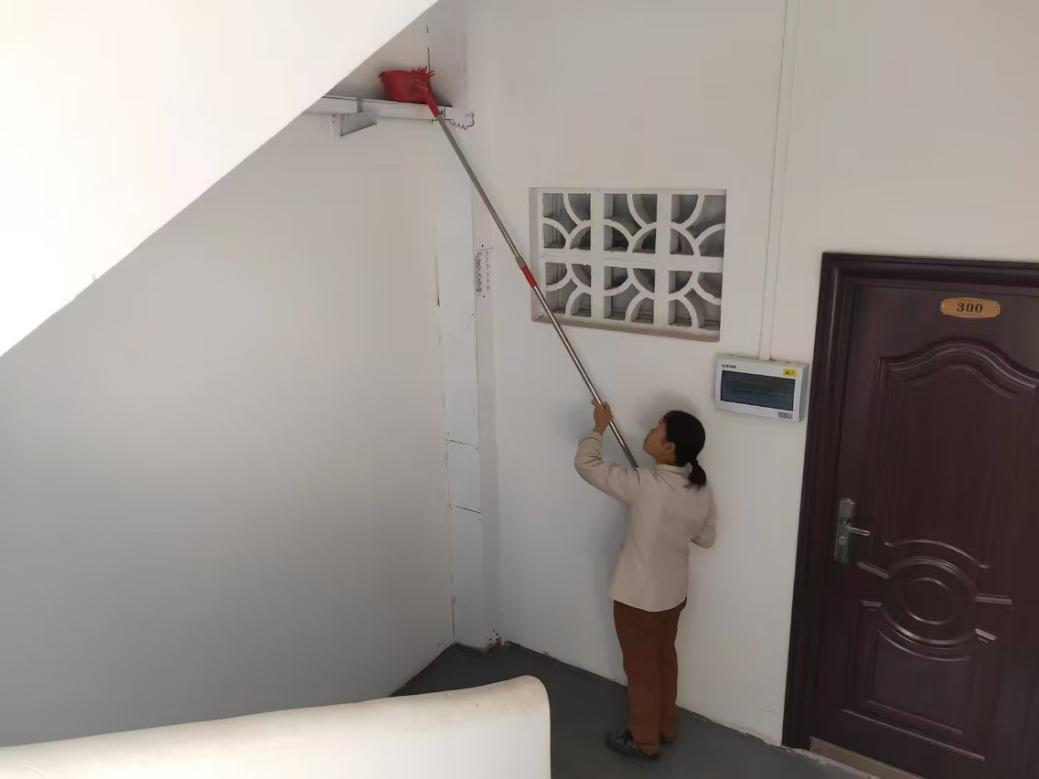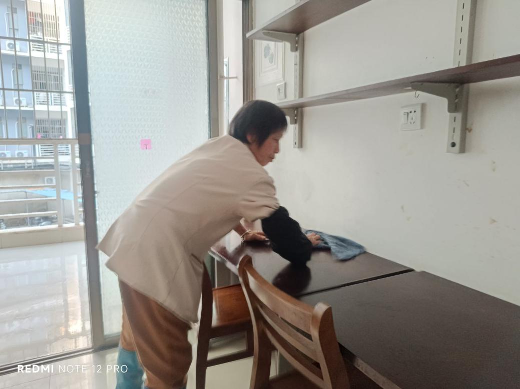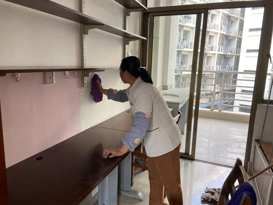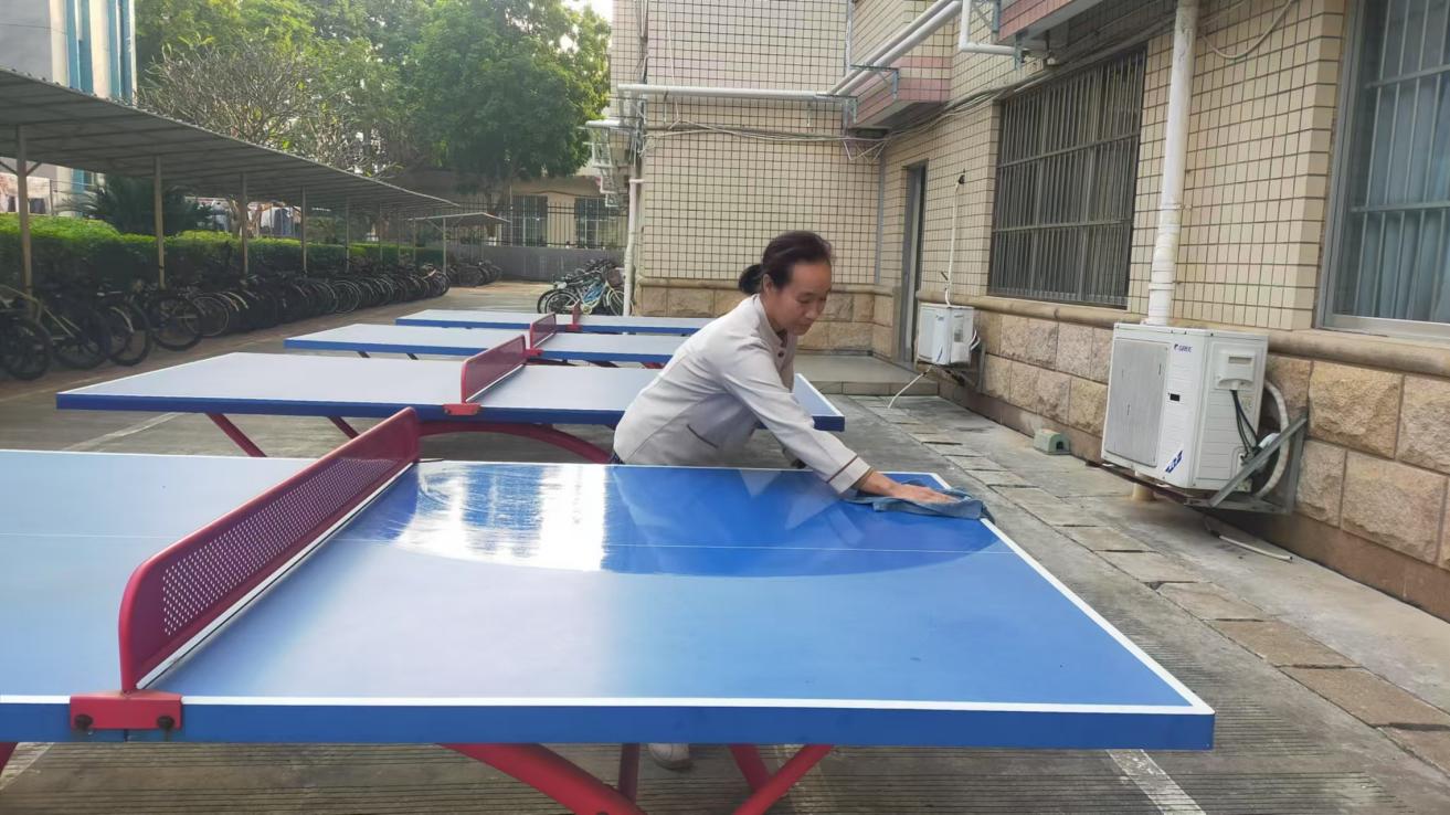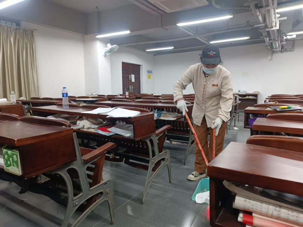 为营造学生公寓园区宜学宜居的环境,认真做好园区内消防设备设施、热水机组、洗涤设备等各种设备设施和40间自习室、15个多功能室的保洁维护工作;做好学生公寓园区内533个生活设施(其中公共长椅147张,乒乓球桌117张,晾衣架173个、健身器材110个)的维护工作。