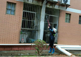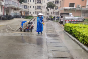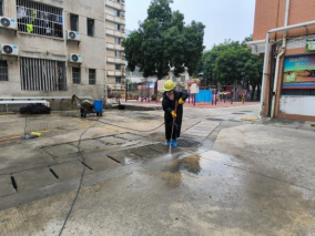 开学前清洗学生公寓园区路面及三米以下墙面