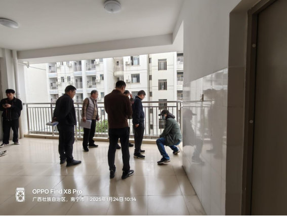 寒假期间,处领导带队深入到东31-35栋现场,全面检查修缮进度与工程质量,并现场协调解决项目实施过程中遇到的困难,确保修缮顺利推进。