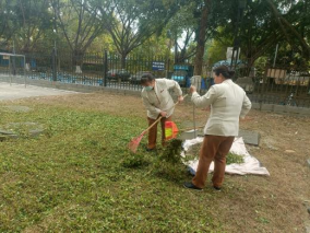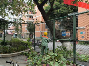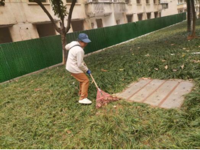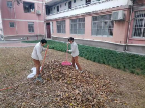 清理绿化带落叶