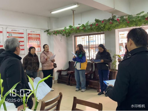1月14日,工作人员和学生代表一起联合开展物业服务月考评工作