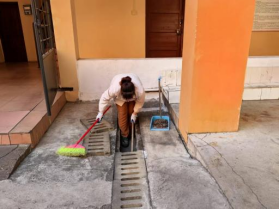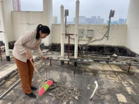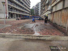 二、为了营造舒适、干净的公寓环境,工作人员对学生宿舍的门庭、过道、楼梯扶手等公共区域展开了彻底的清洁与整理。寒假期间,对学生公寓园区46条排水沟清淤保洁,长度约2200米,清理6个楼栋学生公寓天台的排水设施内淤泥共3次;在12月11日-20日完成西16园区的路面清洗工作,共计清洗路面及三米以下墙面约4735平方米。