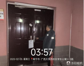 一、全面排查隐患,夯实安全基础。寒假期间,学生公寓服务中心严格执行楼栋安全巡查制度,结合公寓实际情况,工作人员对围墙、高大树木、门窗、水电设施、消防设备等重点区域进行了逐一排查,确保无死角、无遗漏。同时,详细记录巡查情况,及时整改发现的问题,切实筑牢学生公寓的安全防线。