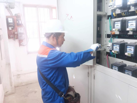 逐间对配电房进行线路排查,拧紧螺丝工作