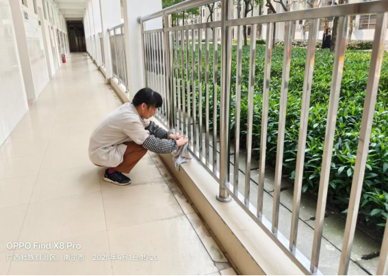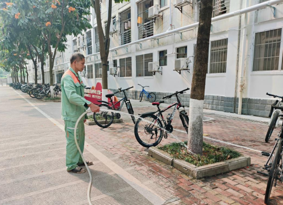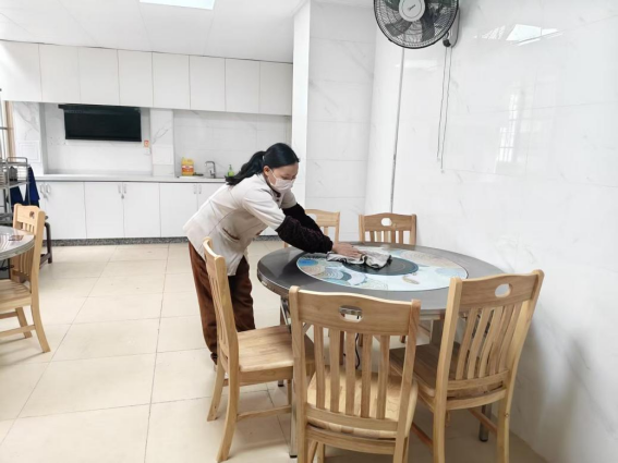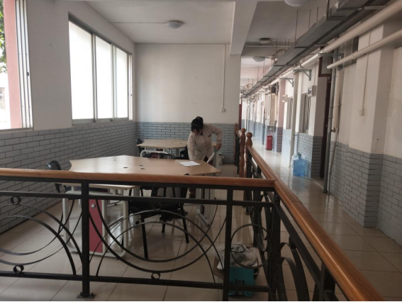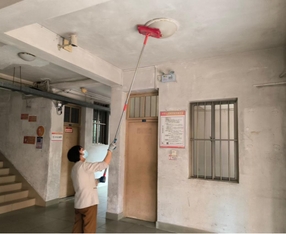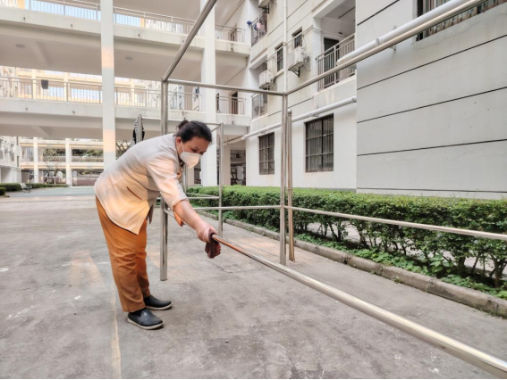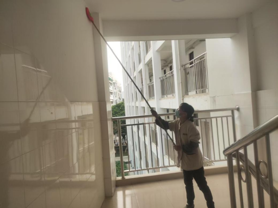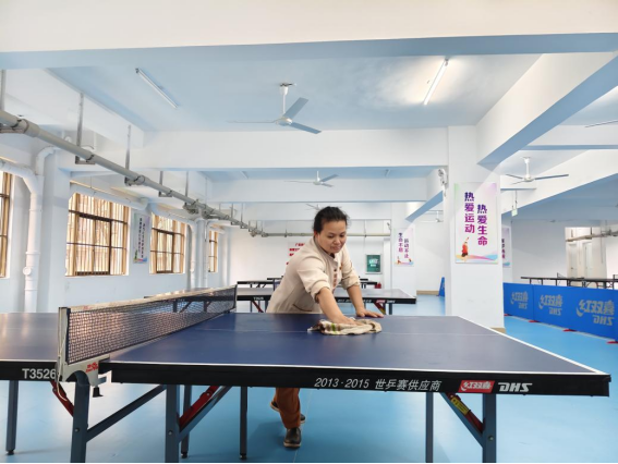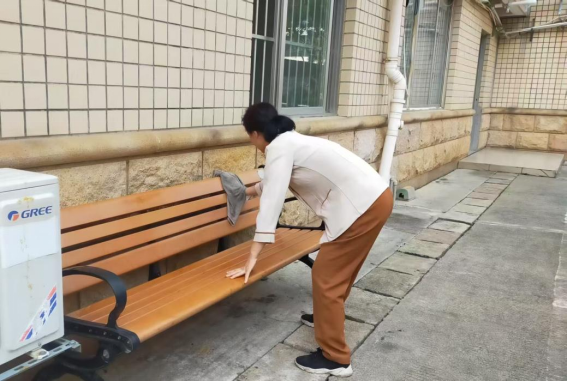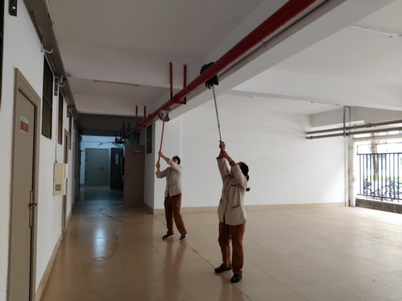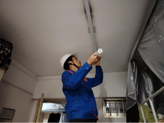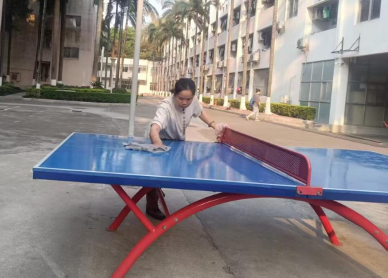 为营造学生公寓园区宜学宜居的环境,认真做好园区内消防设备设施、热水机组、洗涤设备等各种设备设施和40间自习室、15个多功能室的保洁维护工作;做好学生公寓园区内547个生活设施(其中公共长椅147张,乒乓球桌117张,晾衣架173个、健身器材110个)的维护工作。