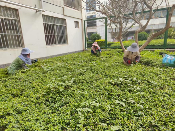 本周绿化养护东31-35园区面积约8365平方米,并对东西各园区的绿植进行浇水;各园区进行日常保洁约19万平方米,清理明沟水沟长度约3270米。