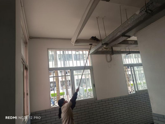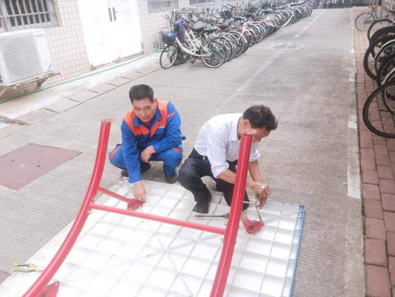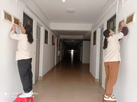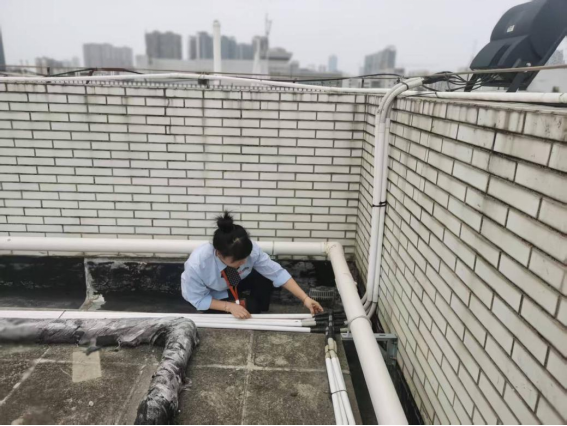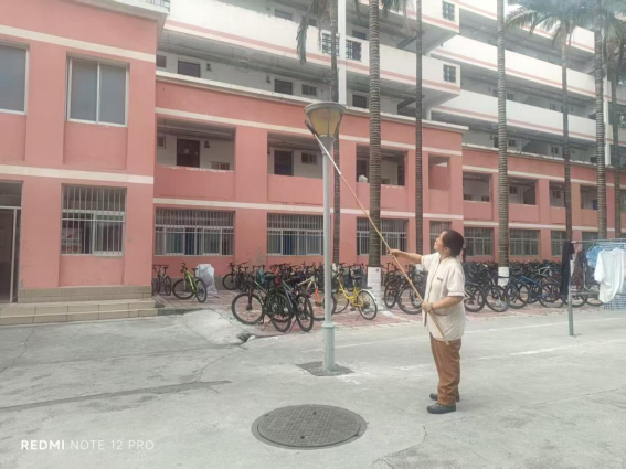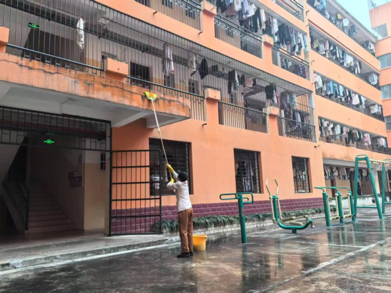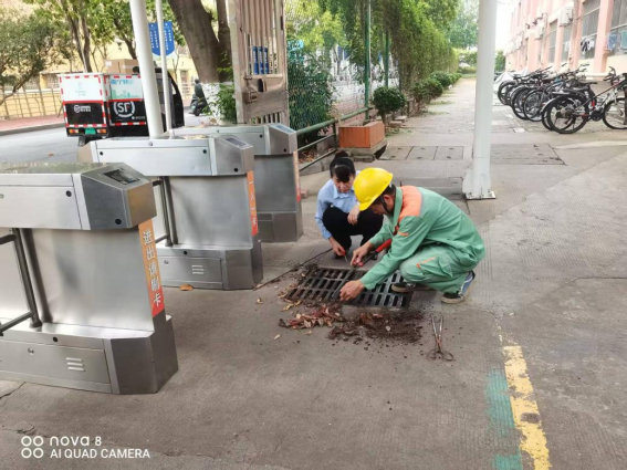 为应对极端天气,学生公寓开展安全排查工作。公寓服务中心对公寓楼的排水设施、楼栋围墙、设施设备、高大树木及宿舍楼周边自然环境等进行全面排查,对发现的隐患和问题及时处理及汇报。