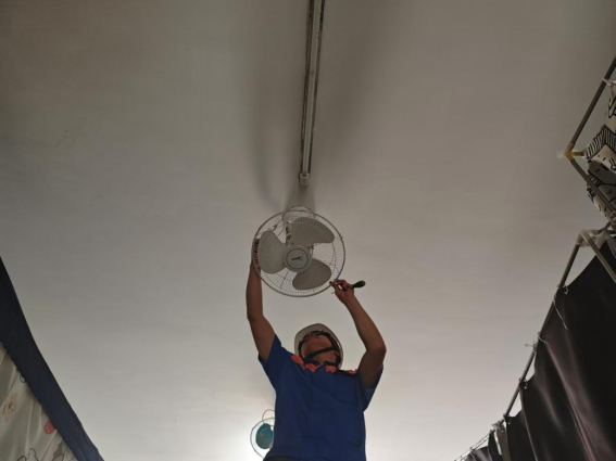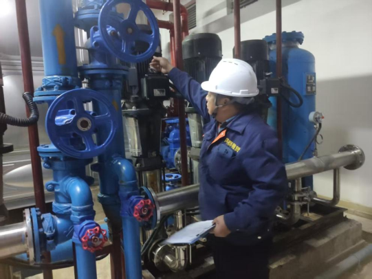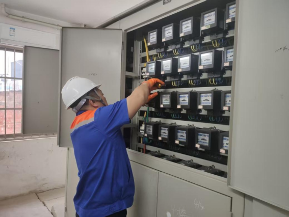 逐间对配电房进行线路排查,拧紧螺丝工作