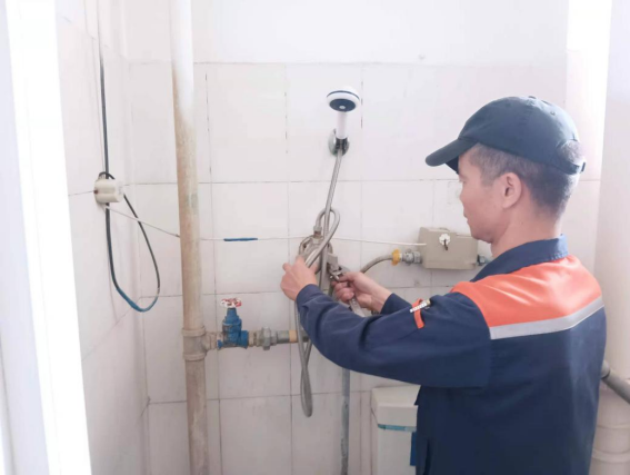 工作人员与住建厅的人员参观东31-35栋学生公寓热水系统
