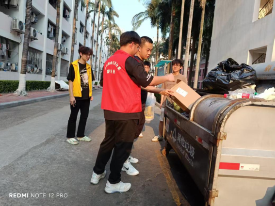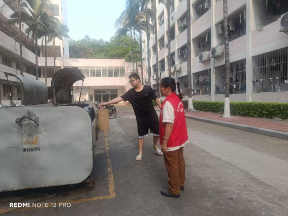 劳动教育岗同学协助督导员进行垃圾分类宣传工作