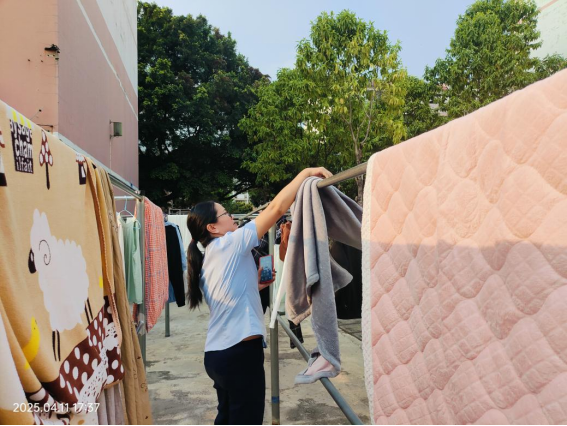 本周各园区值班员帮助同学们晾晒和收回衣物、被褥等352件,发现及协助学生急救5人次。